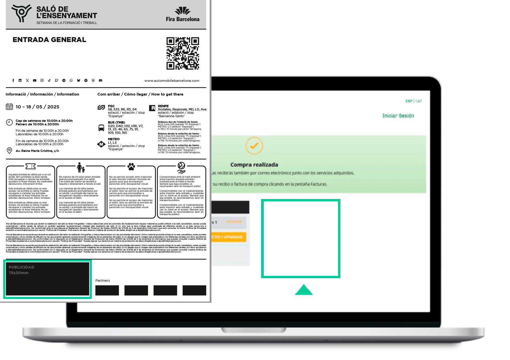 - Anuncio en la pagina final del proceso venta de entradas.